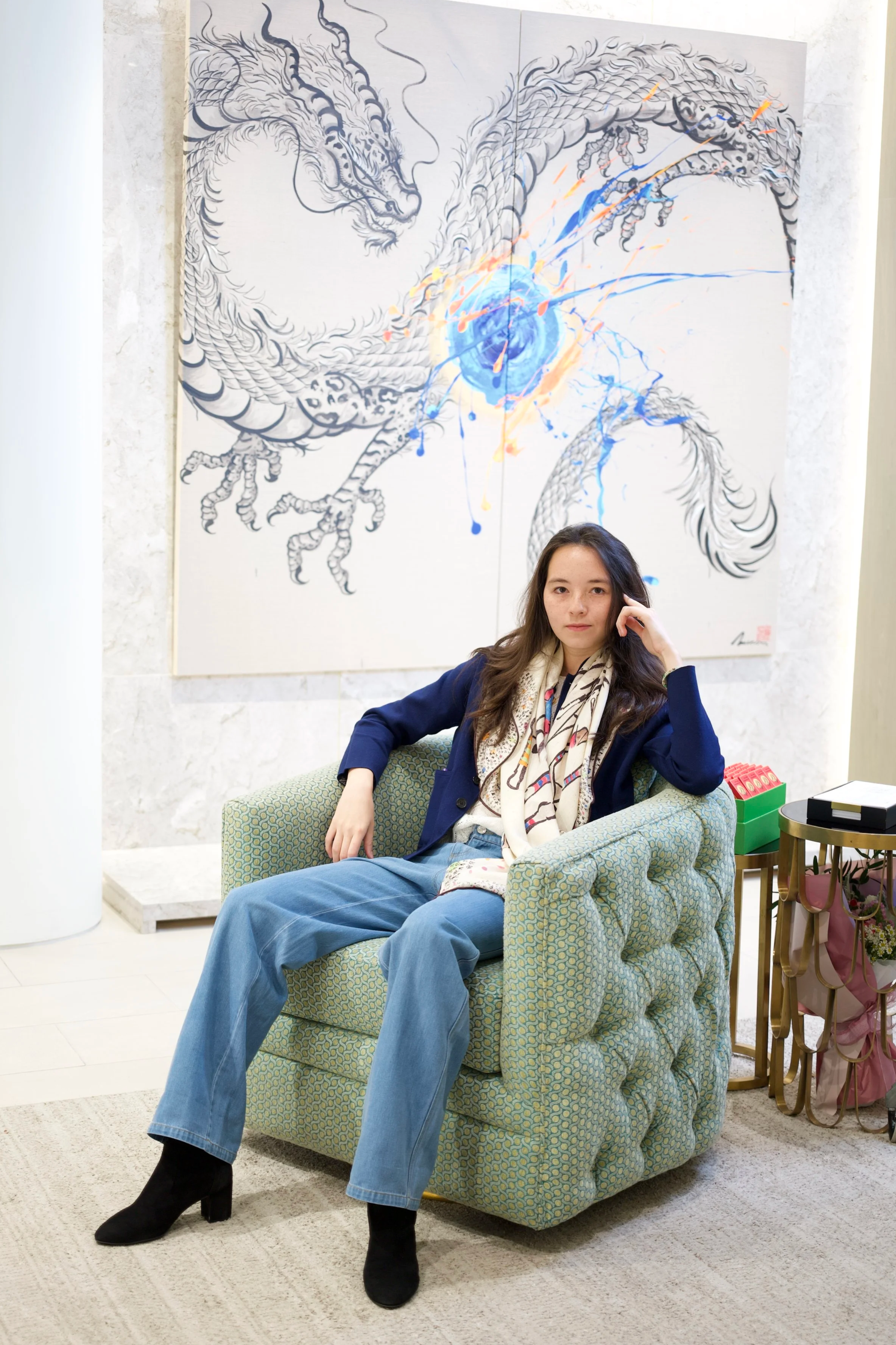 Nawei's paintings have been collected internationally, she is known for her use of Chinese ink and acrylics on rice paper or linen. Bold gestural strokes mixed with delicate details and a touch of color. Her work primarily depicts striking representations of auspicious animals or Chinese mythological creatures such as her signature dragon. Each piece depicts its own meaning and story, influenced by Fungshui, and a fusion of eastern and western philosophies.
